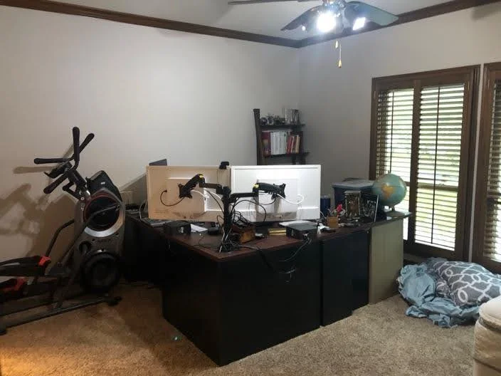 Design is often a decision of priorities. A media room held little appeal but a dedicated place to exercise was a much more preferable choice. Note that this is the only room where we kept a ceiling fan, which makes sense that you might want some air when breaking a sweat.
